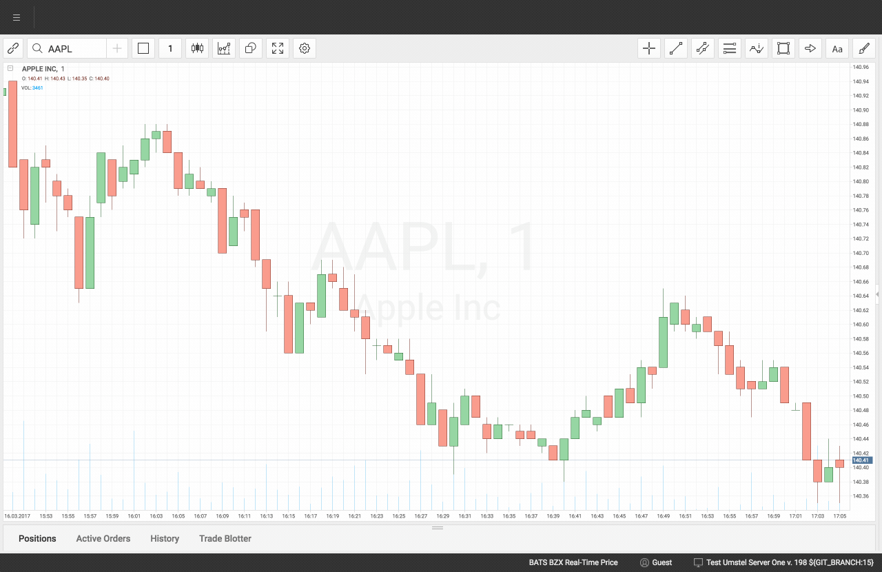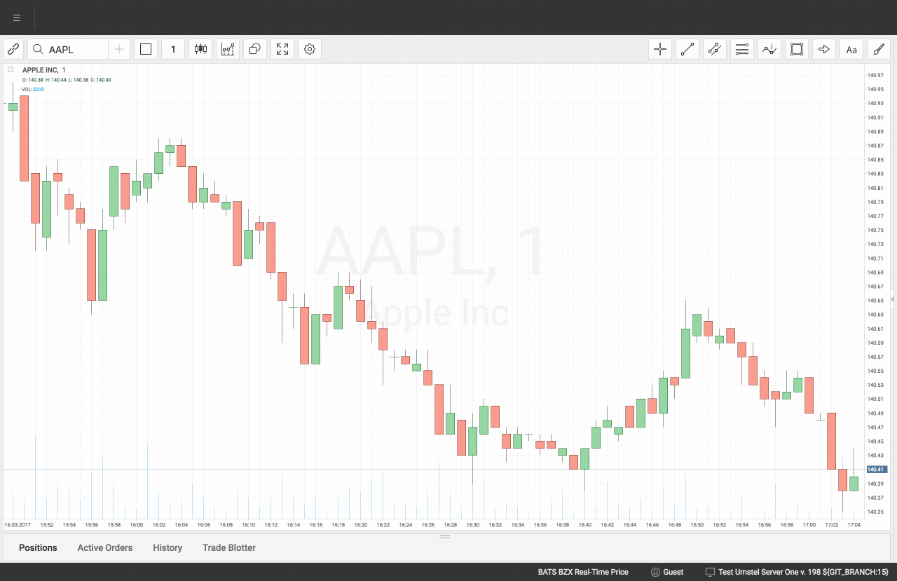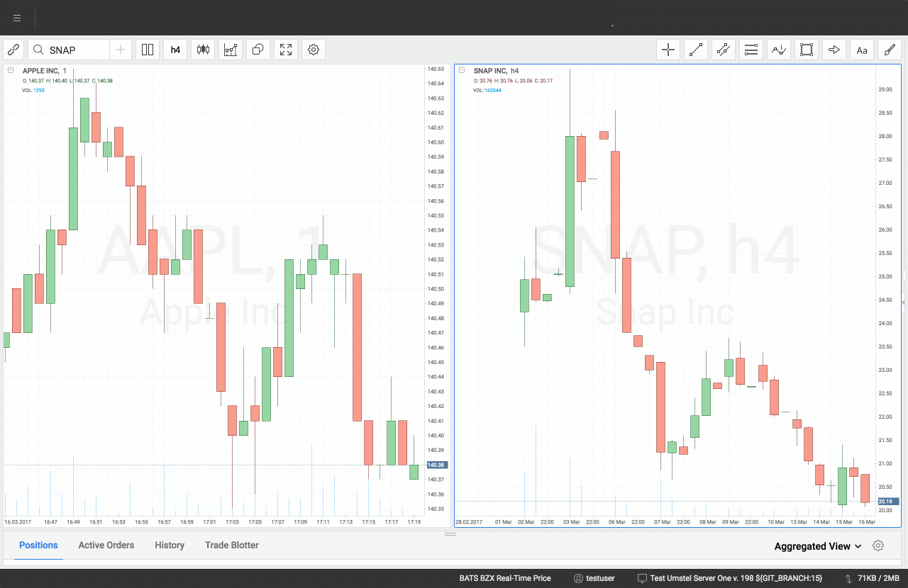 All charts can be linked to an instrument that user selects in terminal workspaces. As a result, a click on the instrument ticker refreshes charts with corresponded instrument, no need to spend time for typing.