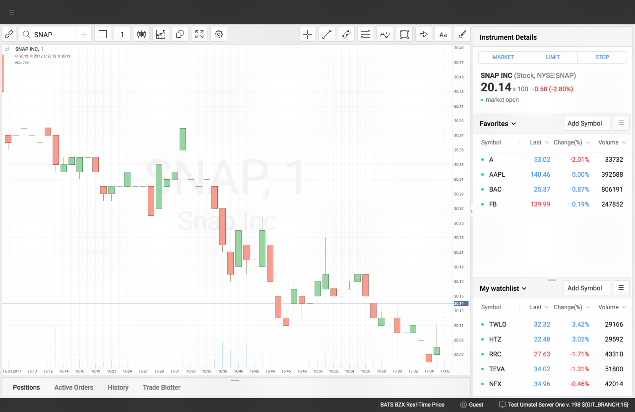 StocksTrader supports following types of orders: Market, Limit & Stop. Orders executed directly on stock exchanges within milliseconds. The best execution price guaranteed by exchange.